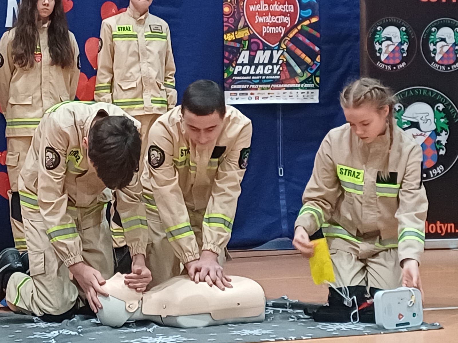 Wśród wielu atrakcji zapewnionych przez organizatora na to wydarzenie był też pokaz Młodzieżowej Drużyny Pożarniczej z zakresu pierwszej pomocy.  Młodzi ratownicy zaprezentowali jak obchodzić się z defibrylatorem, jak prowadzić resuscytację, a także jak zabezpieczyć osobę nieprzytomną.