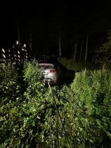 Strażacy po dojeździe na miejsce zdarzenia zastali pojazd o napędzie hybrydowym częściowo zanurzone swoim przodem w okolicach nurtu wody. Osoby podróżujące pojazdem opuściły auto o własnych siłach przed przybyciem służb oraz nie wymagały pomocy medycznej. Miejsce zdarzenia jak i pojazd zostało zabezpieczano, teren działań oświetlono, a w dalszym toku działań pojazd wyciągnięto na drogę.
