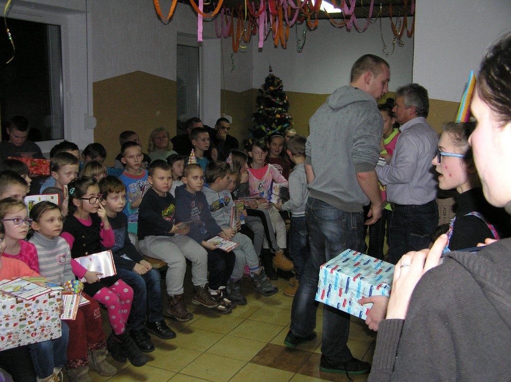 Zanim jednak doszło do ich przekazania młodzież z Kościoła Wolnych Chrześcijan zaprezentowała ciekawy program artystyczny mówiący o Bogu. Zaśpiewano wspólnie kilka pieśni. Mogliśmy gościć Przedstawicieli Zboru Braterskiego z Niemiec: Andy Platte i Christoph Sprenger oraz Sebastiana z Wielkiej Brytanii. Goście musieli przejechać ponad tysiąc kilometrów by być razem z nami. Wśród gości byli także członkowie Zboru KWCh w Szczecinku. Następnie Magdalena i Paweł w bardzo wesoły i ciekawy sposób przedstawili dla zebranych historię Jezusa. 20 minutowe przedstawienie było bardzo fajnym dopełnieniem wspólnie spędzonego czasu. Po przedstawieniu wszystkie zebrane dzieci otrzymały paczki z rąk przybyłych do nas gości, a także wszyscy uczestnicy spotkania zostali obdarowani miłymi podarunkami.