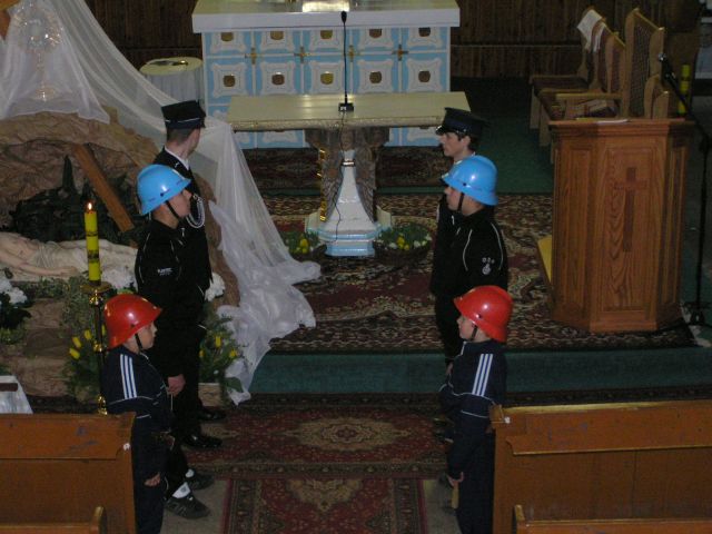 Podczas mszy Mateusz i Krzysiek Pierwsza niedzielna warta to my. Poczet sztandarowy