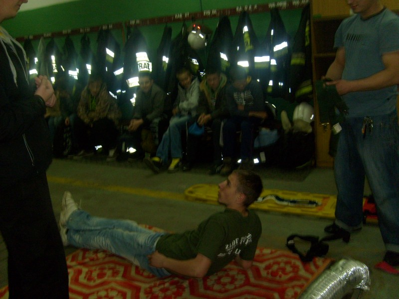 11 kwietnia miała miejsce dość nietypowa zbiórka, która miała na celu zaprezentować naszym młodym druhom, jak udzielić pierwszej pomocy przedmedycznej poszkodowanym w wypadkach komunikacyjnych. Nasz druh Łukasz Rzadkiewicz, a jednocześnie opiekun sekcji MDP powrócił z kursu weryfikacyjnego w zakresie kwalifikowanej pierwszej pomocy i postanowił przekazać zdobytą wiedzę swoim podopiecznym. Zaczął on od zapoznania młodych ze sprzętem znajdującym się w torbie medycznej typu PSP-R1, a także zastosowania deski ortopedycznej. Po teorii przyszedł czas na praktykę, Rzadki na początku pokazał na pozorancie kolejność postępowania z osobą poszkodowaną i szczegółowo to omówił. Następnie druh wraz z druhną Eweliną nadzorowali działania przedmedyczne prowadzone przez młodzież. Każdy z uczestników mógł spróbować swoich sił jako ratownik, celem było udzielenie pomocy i ułożenie na desce poszkodowanego. Działania przebiegły pomyślnie i każdy z uczestników wyszedł z remizy bogatszy o nowe doświadczenie.