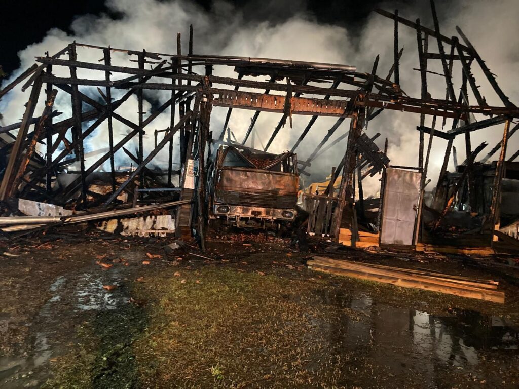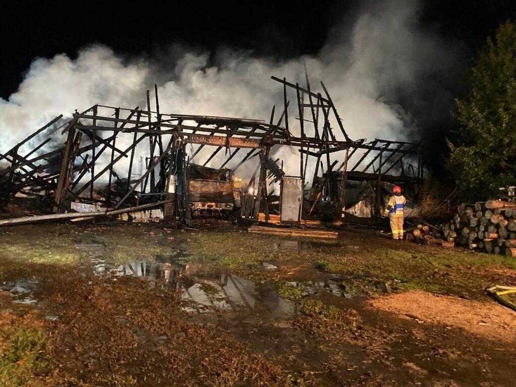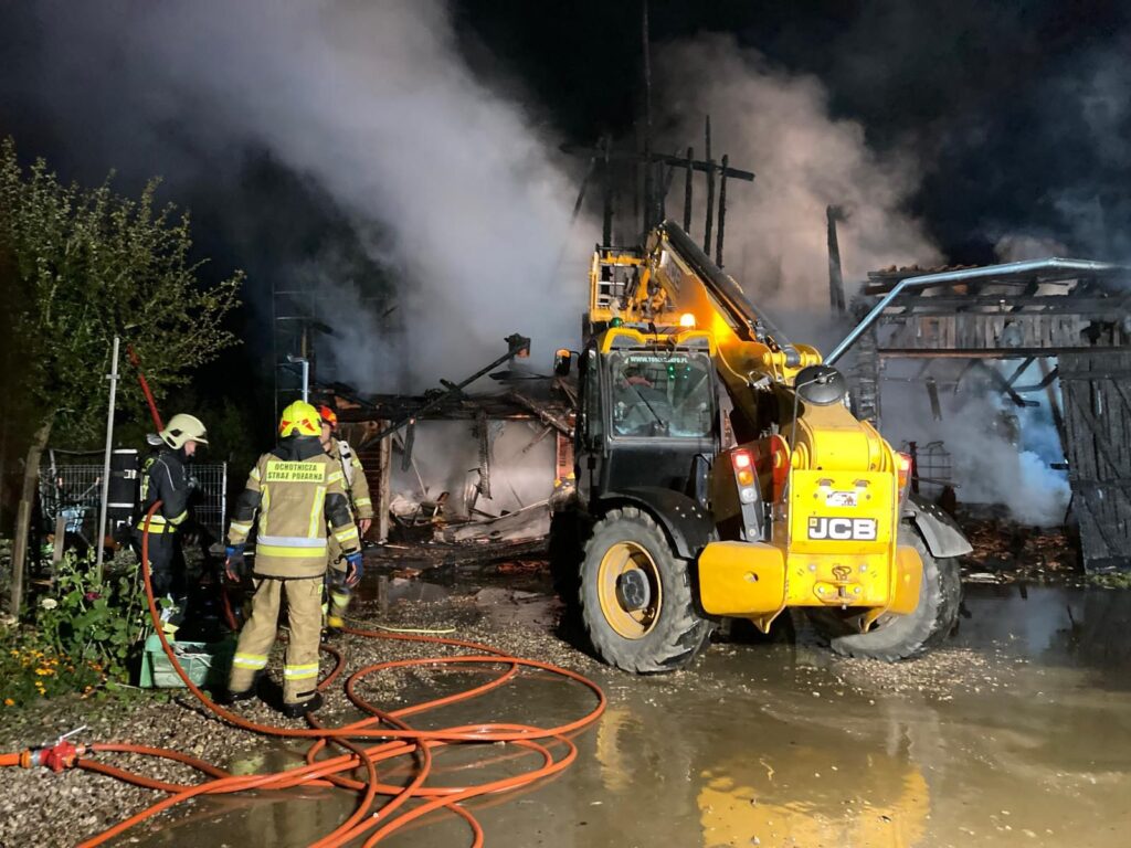 Działania były kontynuowane. Do pomocy zostały zadysponowane dodatkowe zastępy z OSP Lędyczek i OSP Jastrowie. Po opanowaniu rozwoju pożaru przystąpiono do dogaszania i działań rozbiórkowych. Na miejsce przybył także Komendant Powiatowy PSP w Złotowie – st. kpt. Krzysztof Olczak, który przejął dowodzenie i podtrzymał dotychczasowe rozkazy. Do działań rozbiórkowych wykorzystana została ładowarka teleskopowa, którą przyjechał i pracował na miejscu – Bronisław Siemiński z Lubnicy, któremu serdecznie dziękujemy za pomoc. Podczas działań gaśniczych okazało się, iż w stodole znajduje się 30 ton saletry oraz nasz poprzedni samochód Magirus GBA. Niestety pomimo szybko podjętych działań nie udało się tego uratować. Nasze działania w Lubniczce trwały ponad 4 godziny a następnie po powrocie do remizy, przygotowaliśmy sprzęt i pojazd do pełnej gotowości.